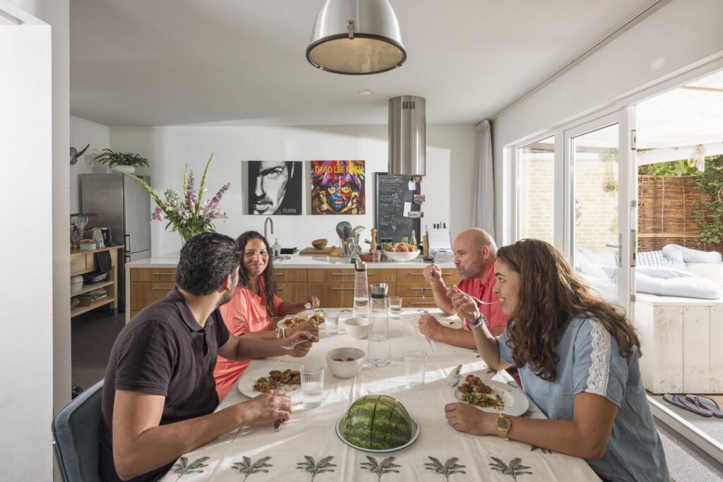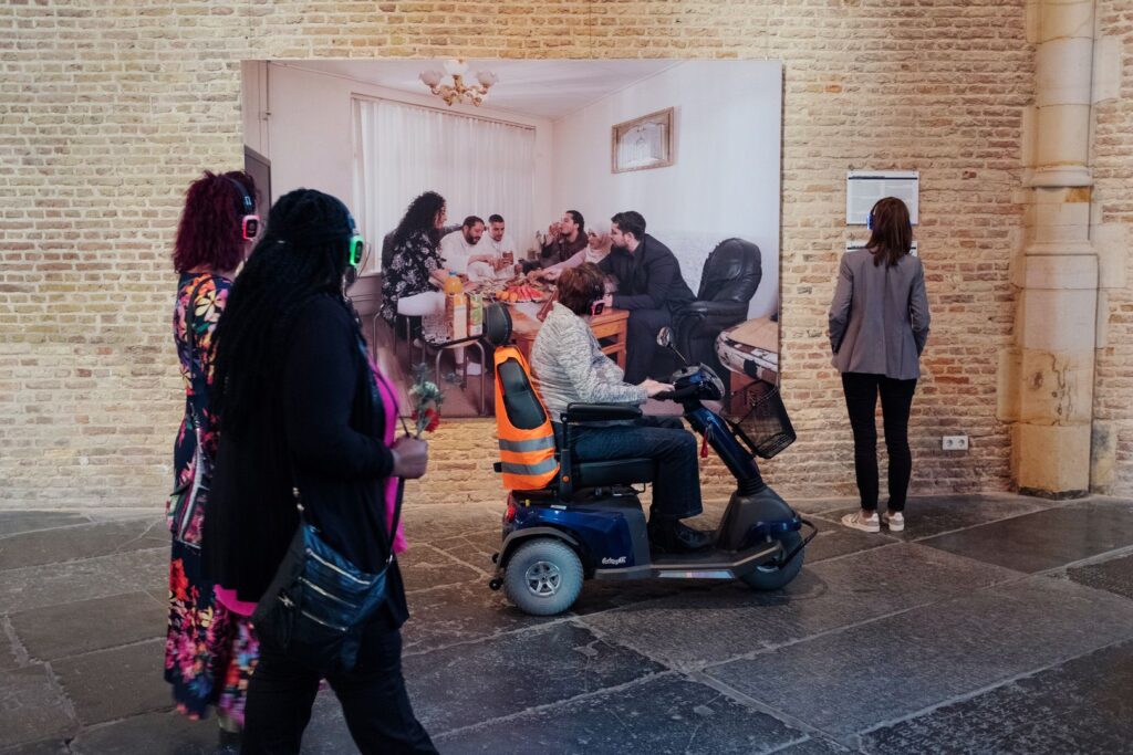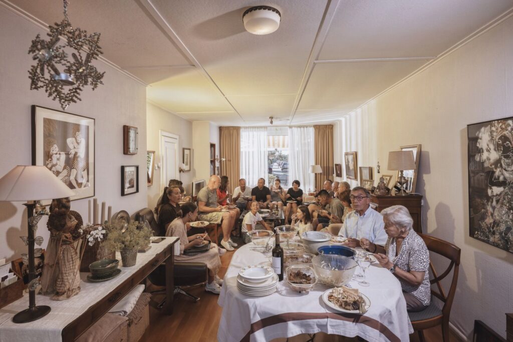 Een wereldreis door Alkmaar. Gastronomie en cultuur snuiven in verschillende wijken waar we hartelijk – en soms ook een beetje ongemakkelijk – werden ontvangen. Want hoe moesten de families zich gedragen tijdens de maaltijd met twee vreemde bezoekers erbij? Hen werd gevraagd zich zo normaal mogelijk te gedragen, net als in het “echte leven”, zo hebben we ze vaak gezegd. Hier zie je een wat ze noemen documentaire tentoonstelling. Achter de foto’s gaan echter uitbarstingen van lachen, armen met kippenvel, stiltes, ontdekkingen, knuffels en respectvolle knikjes schuil.